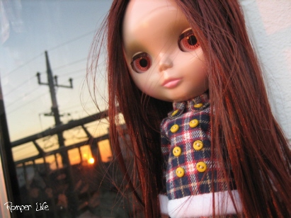 なので雪ちゃんは逆光にならずに夕日をバック・・・という不思議な構図が出来ました。